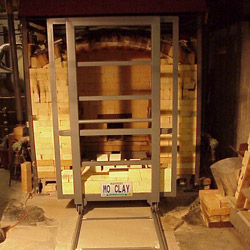 Many thanks go to Dan Siglar for tweaking the design and building the kiln cart and tracks. He also came up with a kiln puller or hitching post to pull the kiln car out of the kiln. I can now pull the cart out of the kiln with the use of the wench hitched to the cart & post. (kind of heavy when loaded) Check out www.ironmandan.com for help in your custom iron work.